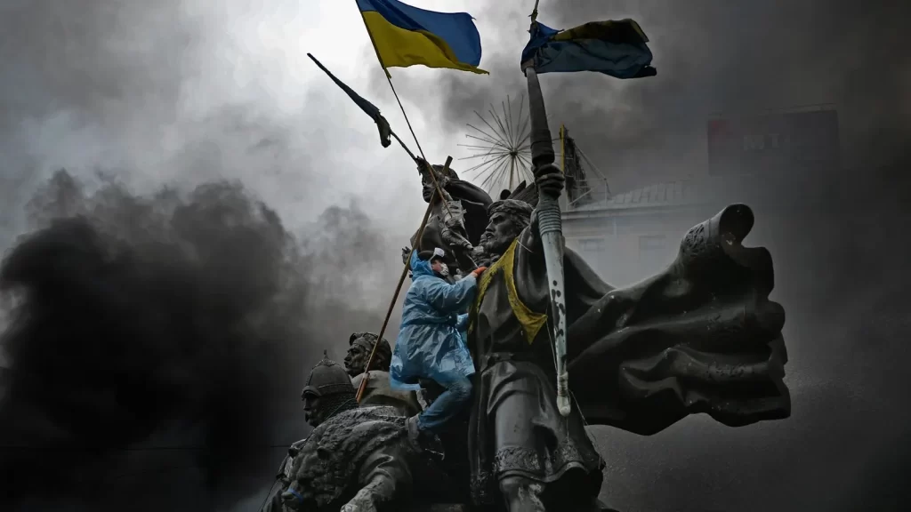 E, do outro lado, a Ucrânia resiste. Resiste como pode. Seu presidente percorre o mundo em busca de apoio. O tempo avança. O povo se cansa. Sofre. Perde filhos, pais, casas, histórias.